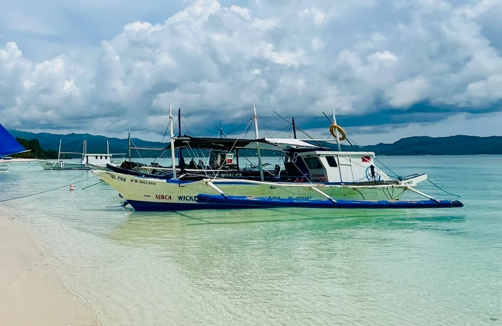 This traditional Filipino outrigger boat (bangka) is the official dive vessel of Wicked Squid Divers in Boracay, Philippines. Designed for both comfort and stability, it carries divers safely across the turquoise waters to explore the island’s vibrant reefs and marine life. Spacious and well-equipped, it offers the perfect platform for scuba diving adventures around one of the country’s top dive destinations.